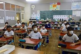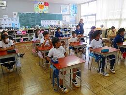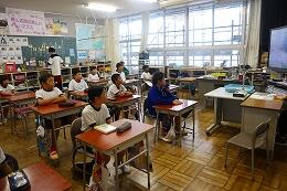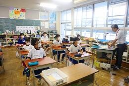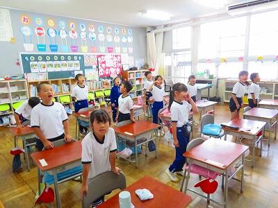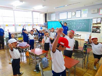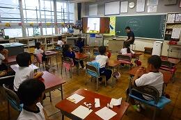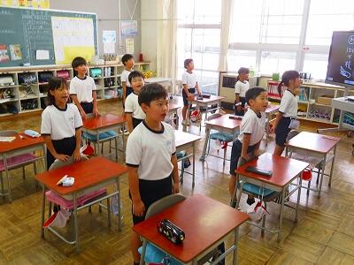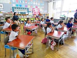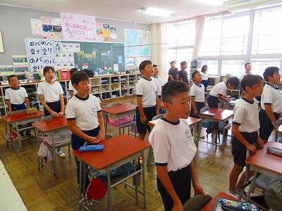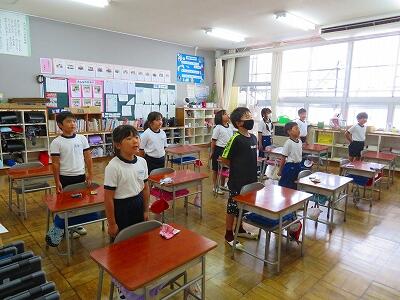 朝の会が始まり、校歌を元気に歌う声が聞こえてきて、各クラスを見に行きました。