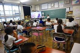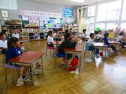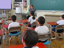 今日は教師による読み聞かせがありました。どのクラスの児童も、集中して読み聞かせを聞いていました。
