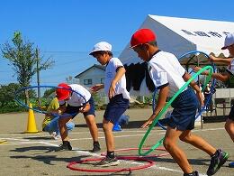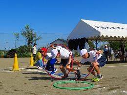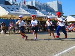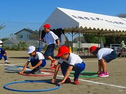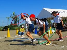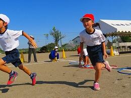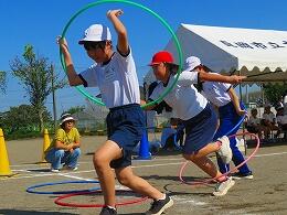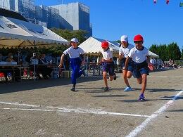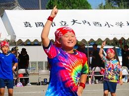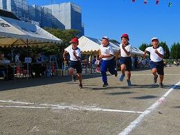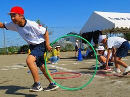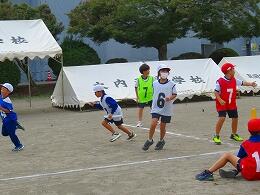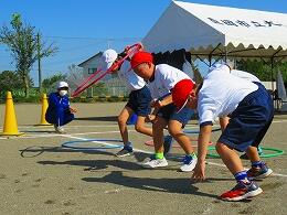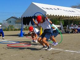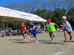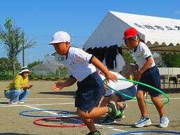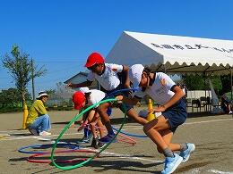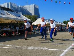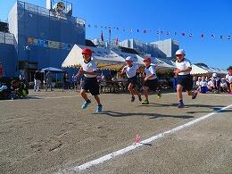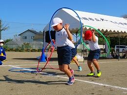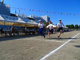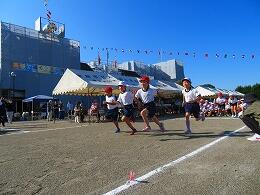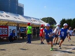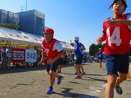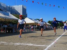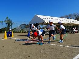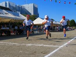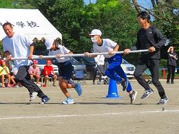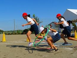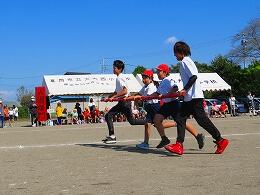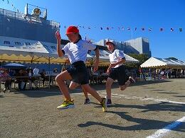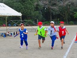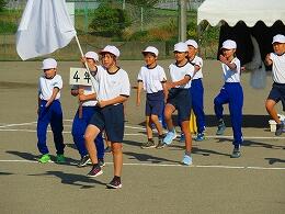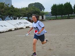 全児童が参加してのリレーです。1年生から6年生までが協力して、バトンをつないでいきます。