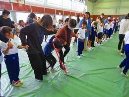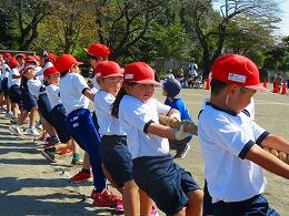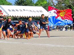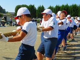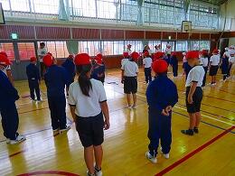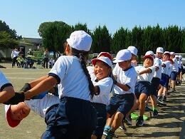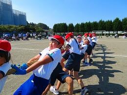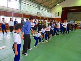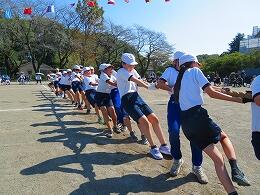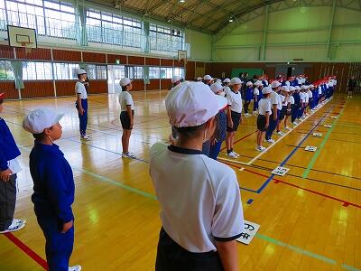 その後、紅白対抗綱引きの並びを確認しました。今年度増やした種目です。縦のつながりを大切にしている学校だからこそできることがあるのではないかと話し合い、増やした種目です。さあ、第一回の勝者は、どちらの組になるでしょう。楽しみですね。地域の皆様、保護者の皆様、応援よろしくお願いします。