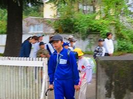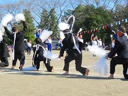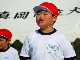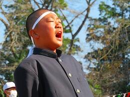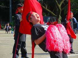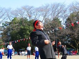応援団の子供たちは、学生服を着てがんばります。中には、一人しかいない係もあります。がんばってください。