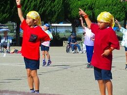 今年の応援歌の振り付けなどを教えており、少しずつできてきました。「さいこうのこ」のみんなが、よりよい運動会にしようと一生懸命です。