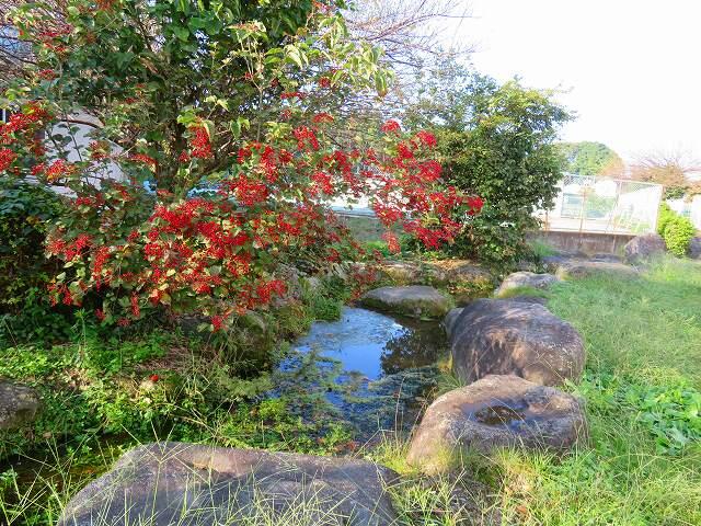 モミジの紅葉も進んできました。校庭を見ると、間違いツツジを見付けました。