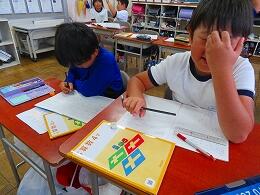 真岡市総合学力調査のため、「さいこうのこ」のみんなが、調査問題に取り組んでいるからです。