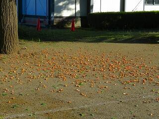 校庭の金木犀の花も散ってしまい、オレンジ色の絨毯のようになっています。