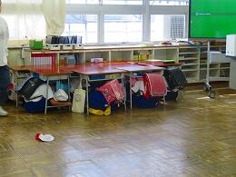 登校してきたら、4・5・6年生は、先週の音楽集会の片づけをするために体育館に向かっていきました。