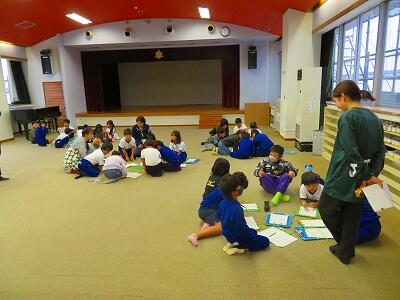 大型の紙芝居を行ってくれました。子供たちは興味をもって参加することができました。