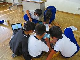 一人一台端末を使って、自分の考えを共有し合いながら、グループごとに学習を進めていました。