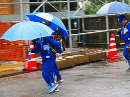 曇り空の中、全体練習を始めたら、途中雨が少し降ってきました。