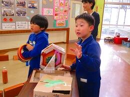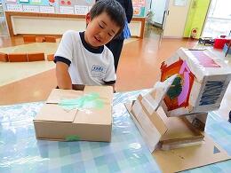 友達の作品を実際に遊んで感想を伝えたり、自分の作品を一生懸命説明したりする姿が見られました。