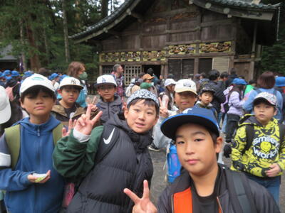 4、5年生の遠足は日光です。東照宮など山内地区や東武日光駅までの市内を班別行動していきます。みんな元気に出発しました。