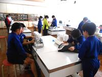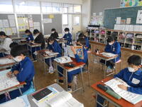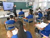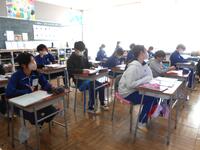 5年生は、家庭科でエプロンづくり完成間近の作業でした。半分くらいの子は終わっているようで、サポートをしながら取り組んでいました。6年生は、外国語の時間でした。これまでの学習の復習と中学校にむけての準備などを確認していました。