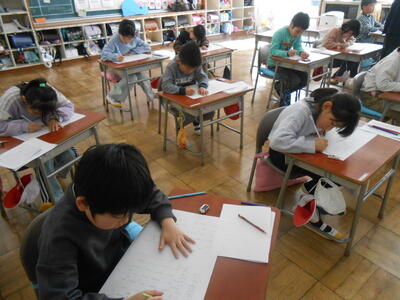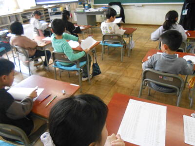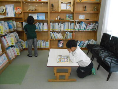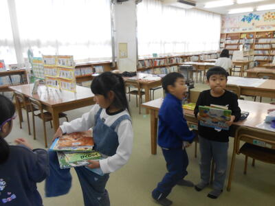 1年生は、冬休みに借りた本を図書室に返していました。2年生は、冬休みに学習してきたかけ算九九や漢字の確認をしていました。