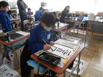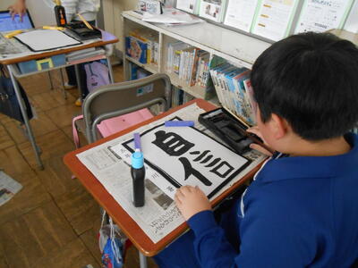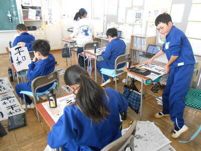 5年学習の様子 投稿日時 : 12/17 管理者 5年生は、書写で習字を行っていました。来年の目標や希望、がんばりたいことに向けて言葉を選び書いていました。「平和」「自信」「読書」「英語」「社会」などさまざまでした。