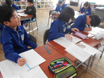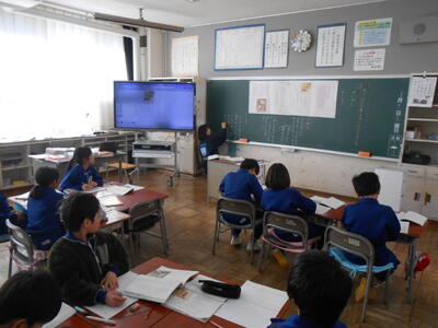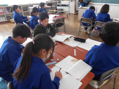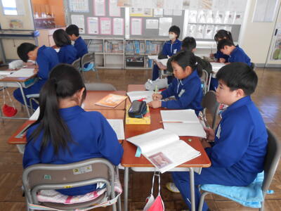4年生は、国語の授業で「ごんぎつね」を学習していました。ごんが兵十につぐないを始めた場面で、ごんと兵十の関係を読み取っていました。