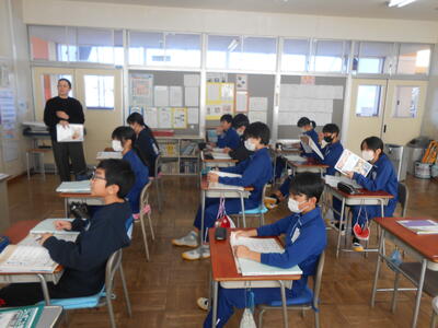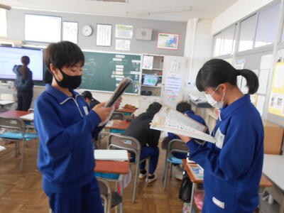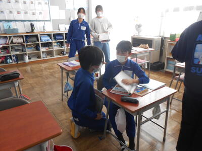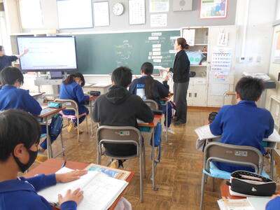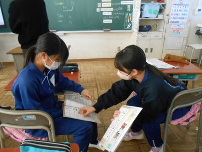 6年生は、ALTと外国語の授業でした。英文を読んで全体で意味を確認した後、友達と会話をする練習をしていました。すらすらと上手に会話をしていました。