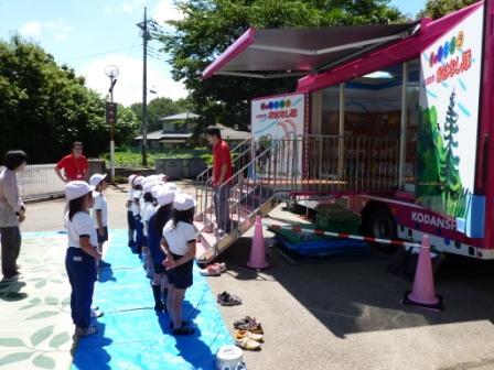 1・2年生がキャラバンカーの中のたくさんの本を読ませていただきました。
