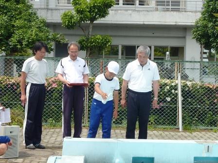 今シーズンのプール開きを行いました。全児童の安全を願い代表児童が安全祈願を行いました。今年の夏も暑くなりそうです。元気に、そして安全にプールの授業を実施したいです。