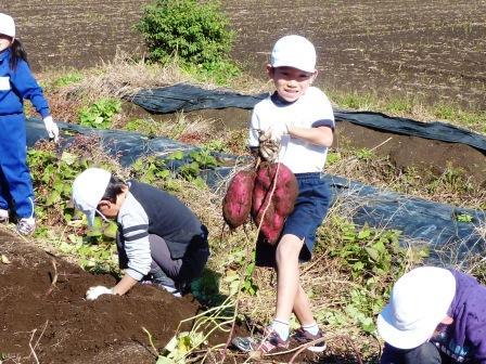 さいこう農園のサツマイモ掘りが各学年始まりました。今年のいもは、夏の暑さの影響なのかどうかわかりませんが、巨大ないもばかりでした。掘ってびっくりの子どもたちです。