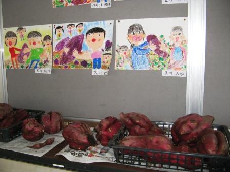 本日の真岡新聞にも各地で巨大サツマイモがとれたという記事が載っていましたが。本校でも巨大サツマイモがたくさん取れました。下の写真は、2年生が収穫したサツマイモと、サツマイモ掘りの絵です。