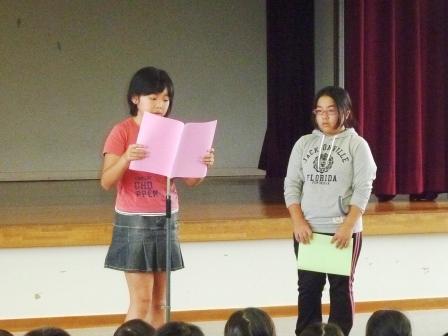2学期始業式 投稿日時 : 2014/09/02 管理者 9月1日(月) 44日間の夏休みが終わり、2学期の始業式がありました。夏休みの様々な体験を胸に、全校児童がひとまわり大きくなって登校してきました。代表児童2名による2学期への抱負が発表されました。