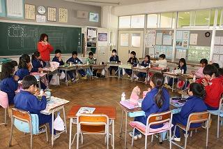 教室に跳び箱?明日の授業参観の練習をする1年生。