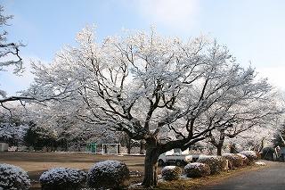 夜半から明け方に降った雪で、花が咲いたような景色に。
