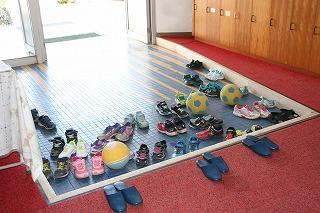 予告なしの訓練で、職員玄関から校内に避難した子どもたちの靴。