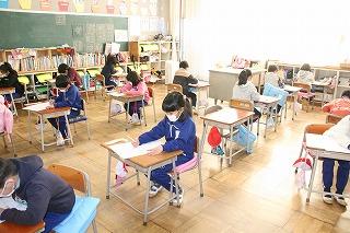 昨日に引き続き、「基礎・基本確認テスト」(算数)を行いました。
