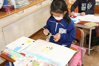 楽しそうな1年生の図工の授業をのぞいてきました。(フォークに色を着けて)