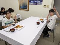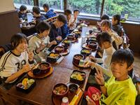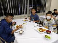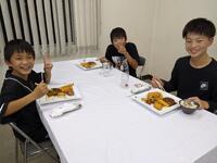 みんなで夕食です。中には、お代わりする子もいました。みんな自分で食べられる分を食べました。これで、お風呂に入って、ゆっくり眠れば、明日もがんばれることでしょう。