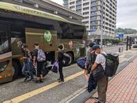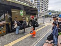 朝はたくさん雨が降っていましたが、雨も止み、無事出発しました。よい修学旅行になるといいですね。よろしくお願いします。