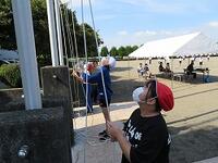 次の種目は、ジャンボリミッキー玉入れです。子供たちと大人の人が協力して競技をしました。今年は、37対38で赤が勝ちました。
