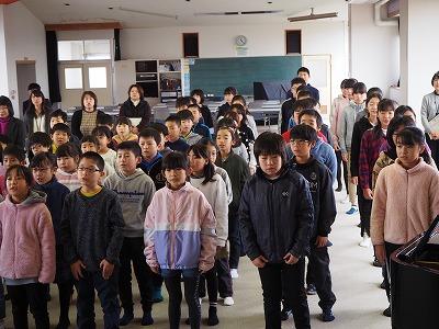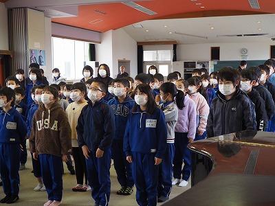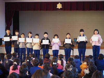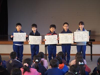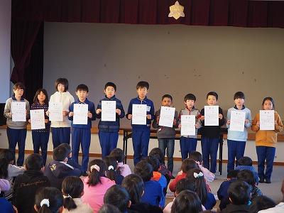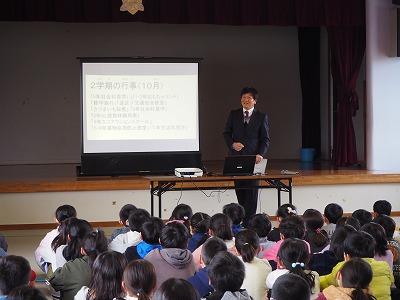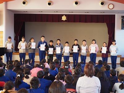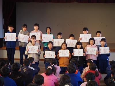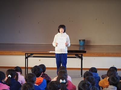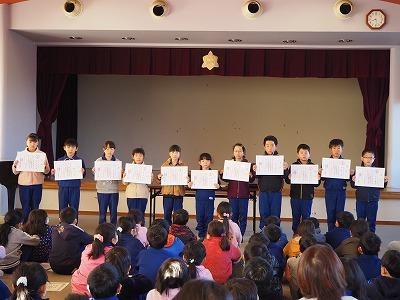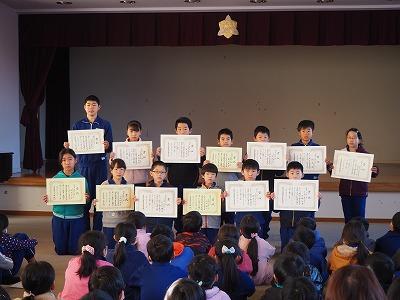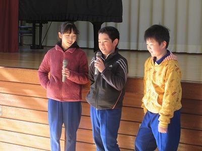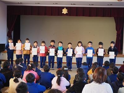 1年の中で、一番長い2学期(77日間)も、いよいよ今日で終わりです。2学期もたくさんの行事がありましたが、みなさんは、どの行事も、「さ・い・こ・う・の・こ」を目指して、一生懸命頑張ってくれたので、とても立派でした。特に、6年生は、下級生の面倒を見ながら、主体的によく頑張ってくれました。明日からの13日間の冬休みを充実した休みになるように、守ってほしいことを3つ話します。①交通安全や健康面の安全に気をつけて生活してください。②年末は、お正月の準備などで忙しくなるので、家の手伝いをしてください。③1月にテストがあるので、2学期までに習ったことを復習してください。1月8日(水)の始業式には、皆さんの元気な姿が見られることを楽しみにしています。
