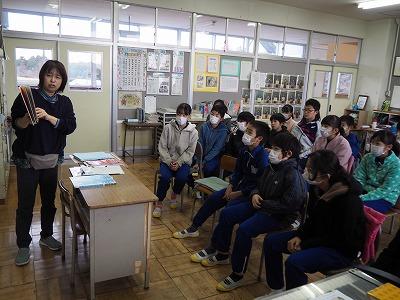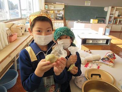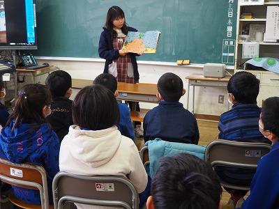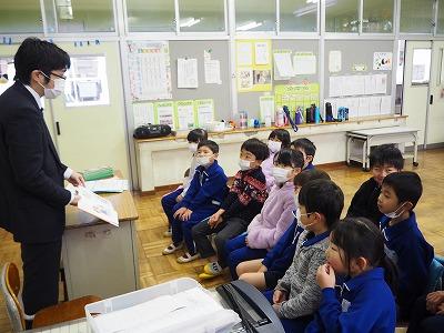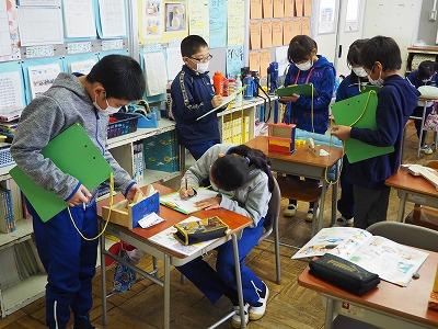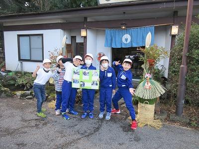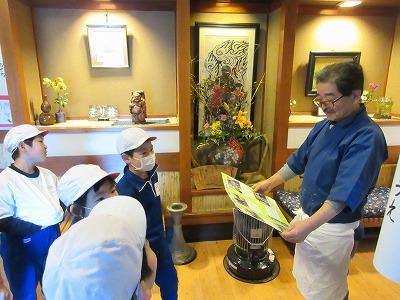 町たんけんでお世話になった、学区内にある店舗(飯塚商店、うな源別館、肉の山口、らいらい、桑原商店)に、オリジナルの写真入りの手作りカレンダーを届けに行きました。