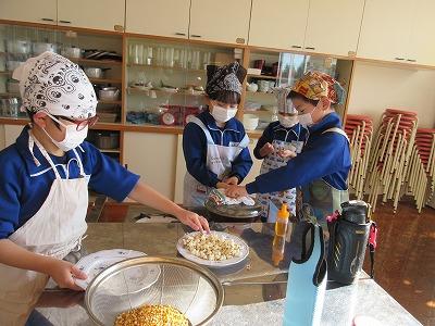 北陵高校で収穫したトウモロコシと佐藤さんからいただいたさつまいもを使って、ポップコーンとスイートポテトを作りました。