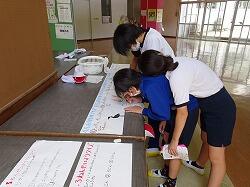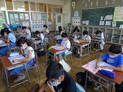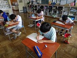 5年生は、プールのあとの書写の時間に暑中見舞いを書いていました。色を使ってきれいに仕上げたり、あて名書きの枠を使って、あて名書きの形を覚えたりして、仕上げていました。将来の役に立ちそうです。