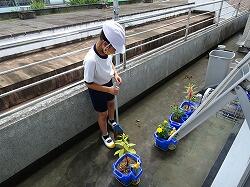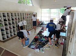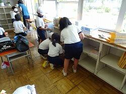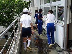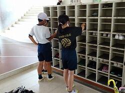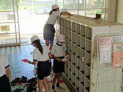 今日は、清掃から5校時にかけて大掃除が行われました。清掃時にはゴミ箱を洗ってきれいにし、大掃除では、教室のロッカーやくつ箱をきれいにしました。さらに、いつもはできないベランダや水槽洗いなどもやっていました。1学期の汚れをきれいにできました。