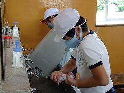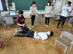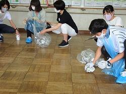 教職員は保健関係の研修を行いました。今日の課題は「嘔吐物の処理」と「食物アレルギー」の対応です。養護教諭が中心になって、研修で学んできたことも取り入れながらの研修です。食物アレルギーについては、本当に起きたら大変です。役割演技をしながら、真剣に行いました。