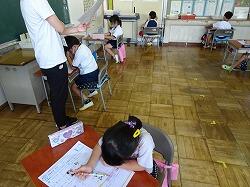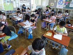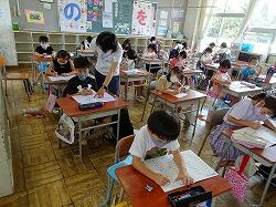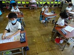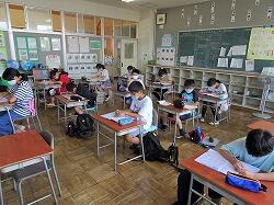 2年生も、テストをやって、終わった児童は、夏休みの宿題の漢字練習の準備をしたりしていました。