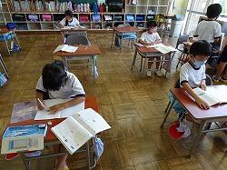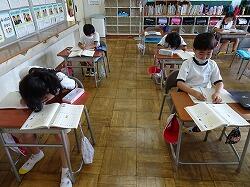 高学年は無論のこと、低学年の児童もまじめに学習に取り組んでいましたが、休憩時間は友達と和やかに会話していました。さて、次に学校に来るのは9/1という児童が多いと思います。事故のないように元気に過ごしてほしいと思います。