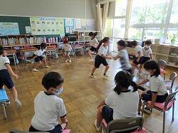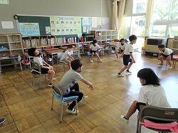 2年生は次の時間は、お楽しみ会を計画して、フルーツバスケットをやっていました。外で体を動かす活動も計画されていました。