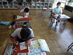 1・2年生は見に行った時、テストをしたり、1学期の復習をしたりしていました。写真はありませんが、次の時間には、「おおきなかぶ」の音読練習をする1年生の声も聞こえていました。