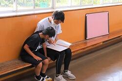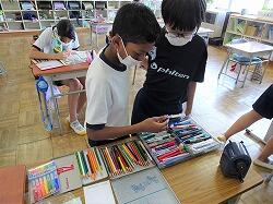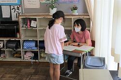 最後の写真は、1学期頑張ったのでご褒美シールをもらっているところです。2学期も頑張ってください。