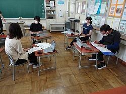 図工室では応援団員が集まって、組ごとに応援の仕方を話し合っていました。もう、運動会に向けて動き始めています。