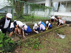 夏の間、花壇に植えてあったサルビアやベコニア・マリーゴールドの花もそろそろ終わりに近づいて半分枯れてきています。今日の清掃は花壇の片づけです。花を抜いて、花壇をきれいにして、冬用の花の苗を植える準備をしました。全学年一生懸命取り組んで、ごみのコンテナがいっぱいになりました。