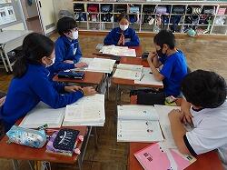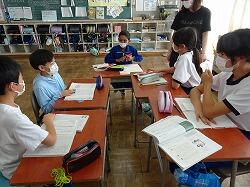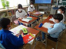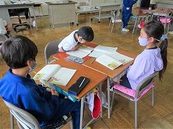 今日は2年生の教室におじゃましました。グループになって音読発表の練習をしていました。