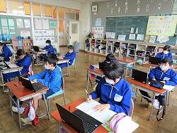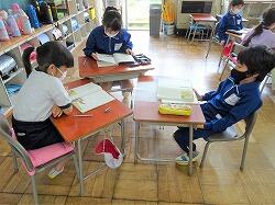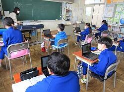 同じ時間に3年生と4年生の授業ものぞいてみましたが、両方ともタブレットを使っていました。3年生は先生から課題を送ってもらい、答えを先生に送っていました。4年生は、運動会のダンス(?)の映像を見ながら振付を確認し踊る練習をしていました。3年生以上は存分にタブレットを使っているようです。