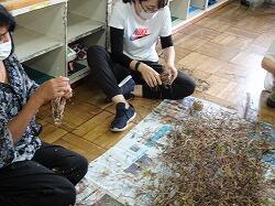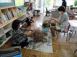 アサガオのつるを使ってのリースづくりのボランティア
