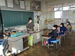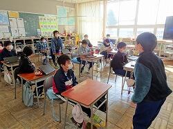 5年生は低学年の机・椅子運びを手伝っています。机・椅子を運び終わったら、自分たちの教室を片付けて、来年度の教室に移動し、帰りの会を行いました。3月に結婚した先生のクラスでは、児童から結婚のお祝いのプレゼントを、サプライズでしていました。